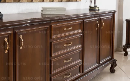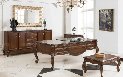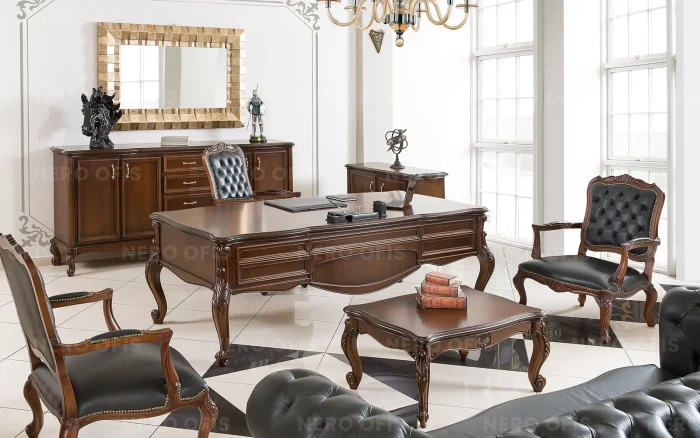 Nero Ofis’in Rok Makam Takımı, klasik tarzın zarafetini yansıtan şık bir tasarıma sahiptir. Kaliteli malzemelerle üretilen bu takım, estetik detaylarıyla ofislerinize zarif bir hava katıyor. Dayanıklı yapısı, uzun ömürlü kullanım sunarken, geniş çalışma yüzeyleri profesyonel bir atmosfer oluşturuyor. Rok Makam Takımı, klasik çizgileriyle zamansız bir estetik sunarak ofis dekorasyonunuza prestij ekliyor. Klasik tarzı sevenler için ideal bir tercih olan bu takım, iş yaşamında şıklığı ve konforu bir araya getiriyor.